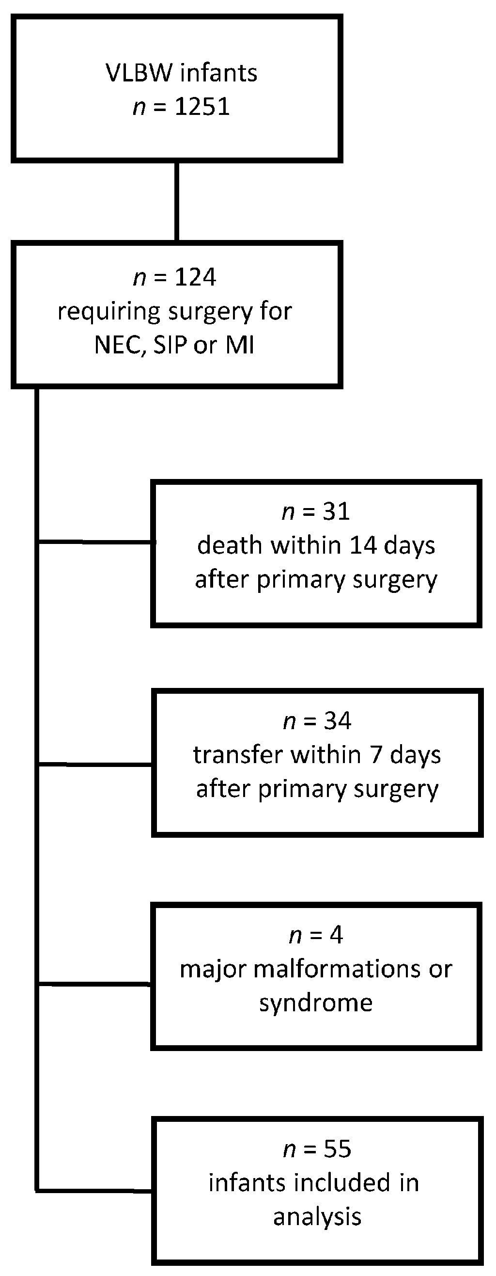 - Humberg, A.; Spiegler, J.; Fortmann, M.I.; Zemlin, M.; Marissen, J.; Swoboda, I.; Rausch, T.K.; Herting, E.; Göpel, W.; Härtel, C.; et al. Surgical necrotizing enterocolitis but not spontaneous intestinal perforation is associated with adverse neurological outcome at school age. Sci. Rep. 2020, 10, 2373. [Google Scholar] [CrossRef] [PubMed]