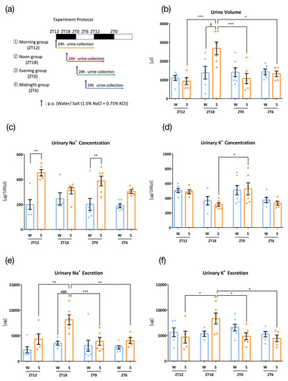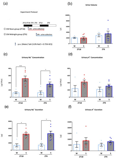 Imamura, M.; Sasaki, H.; Hayashi, K.; Shibata, S. Mid-Point of the Active Phase Is Better to Achieve the Natriuretic Effect of Acute Salt Load in Mice. Nutrients 2023, 15, 1679. https://doi.org/10.3390/nu15071679