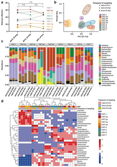 3.3. Transport and Processing of Stool Donations into FMT Capsules Induce Minor Changes in Microbial Composition
