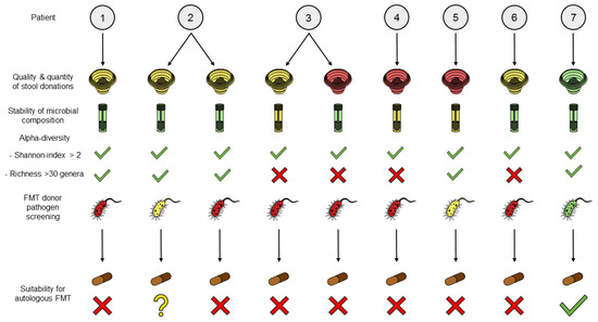- Kassam, Z.; Dubois, N.; Ramakrishna, B.; Ling, K.; Qazi, T.; Smith, M.; Kelly, C.R.; Fischer, M.; Allegretti, J.R.; Budree, S.; et al. Donor Screening for Fecal Microbiota Transplantation. N. Engl. J. Med. 2019, 381, 2070–2072. [Google Scholar] [CrossRef]
