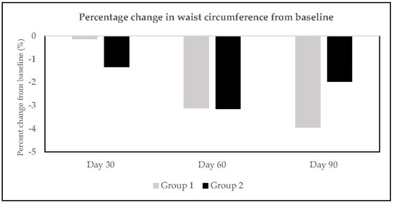 Percentage change in waist circumference at Day 30, Day 60, and Day 90.