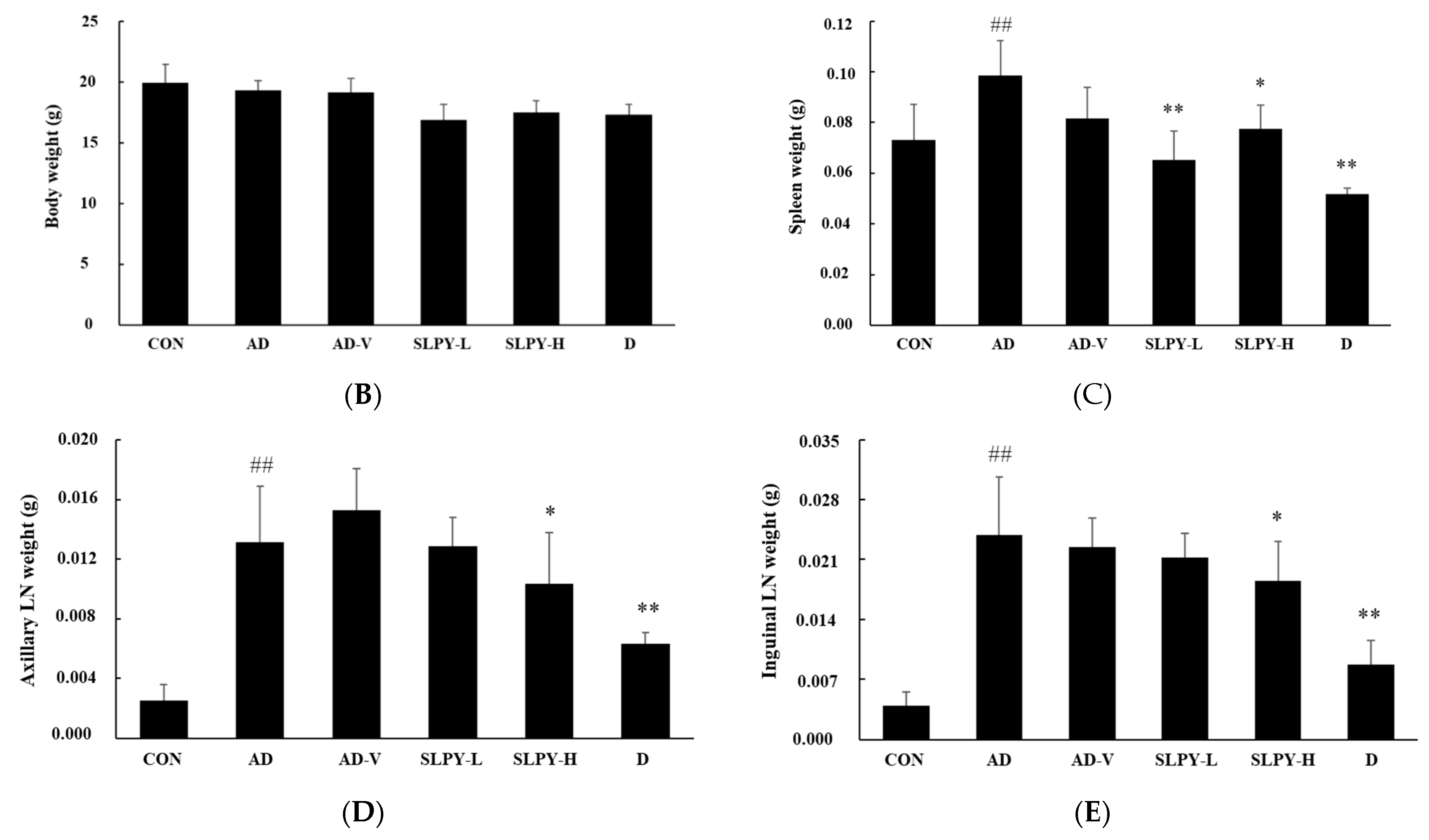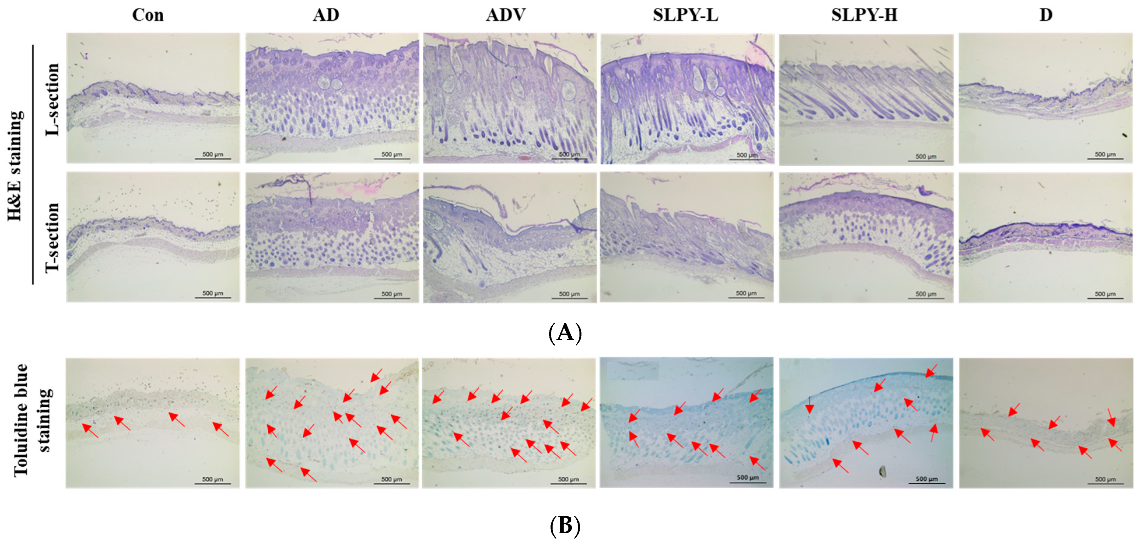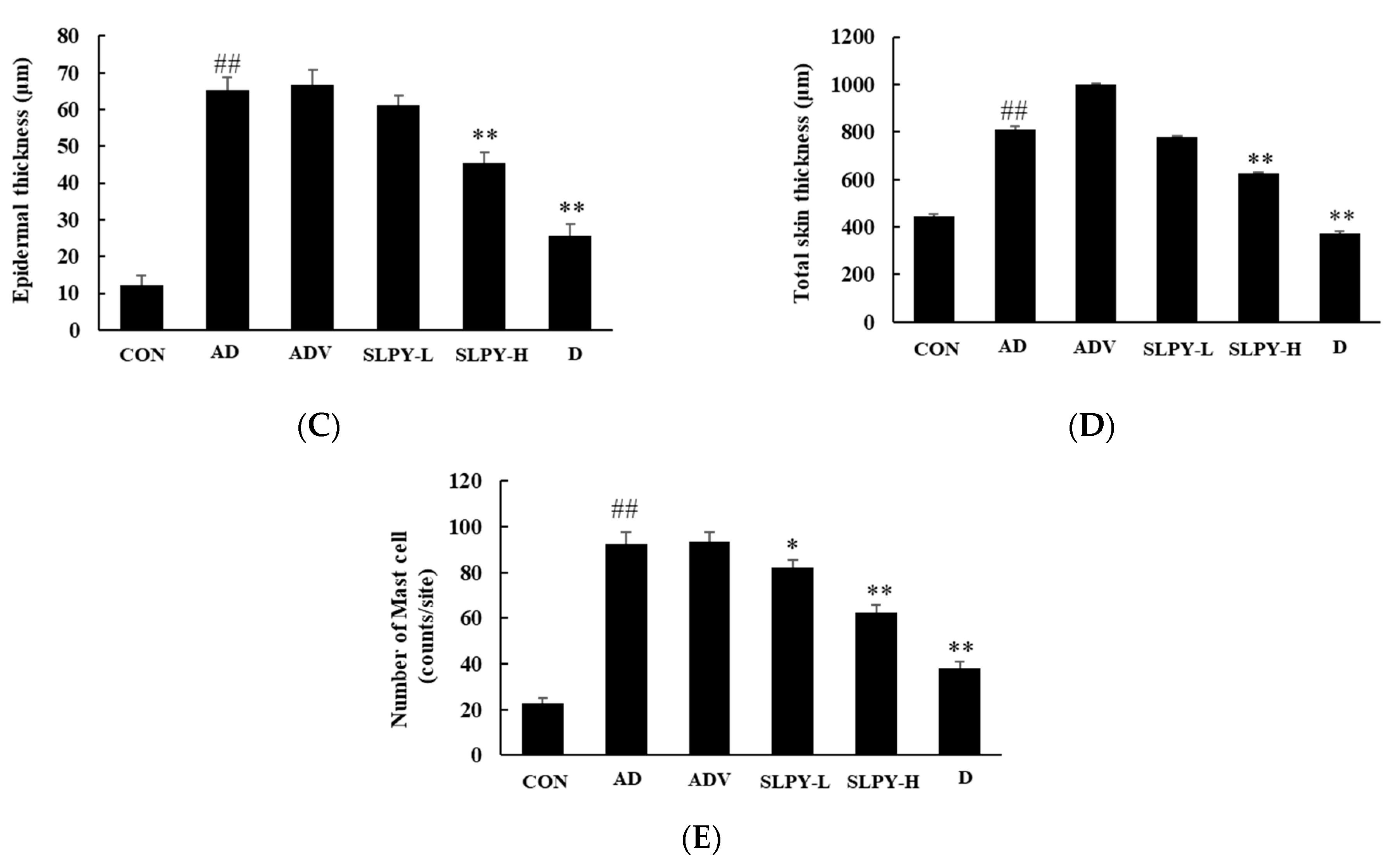 3.5. SLPY Ameliorates AD-like Skin Lesions in DNCB-Treated BALB/c Mice