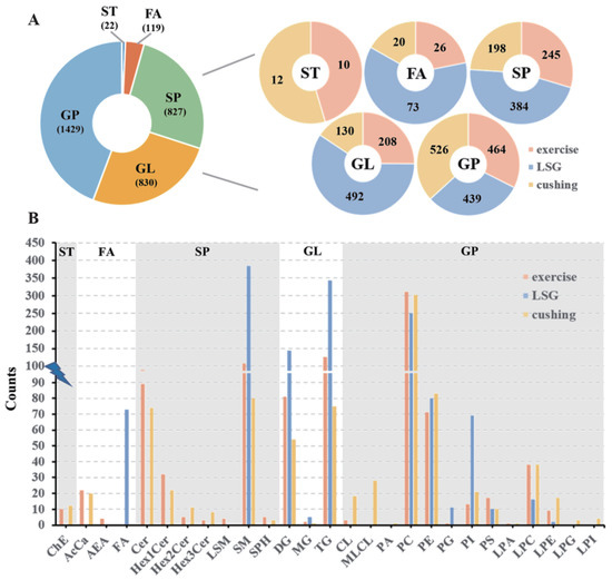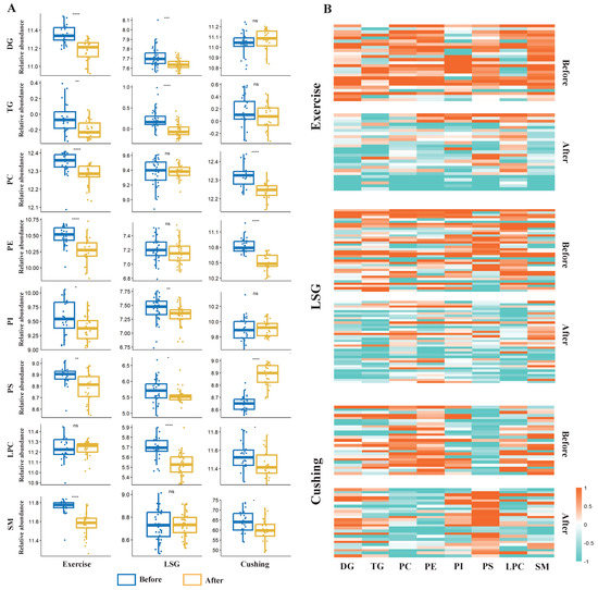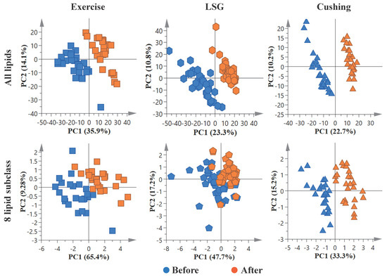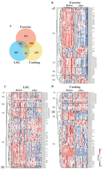 3.4. Exercise and Surgical Interventions Induce Marked Changes in the Lipidome