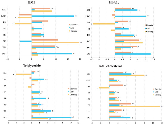 3.3. Lipid Subclasses with Significant Relationships to BMI, HbA1c, Triglyceride, and Total Cholesterol