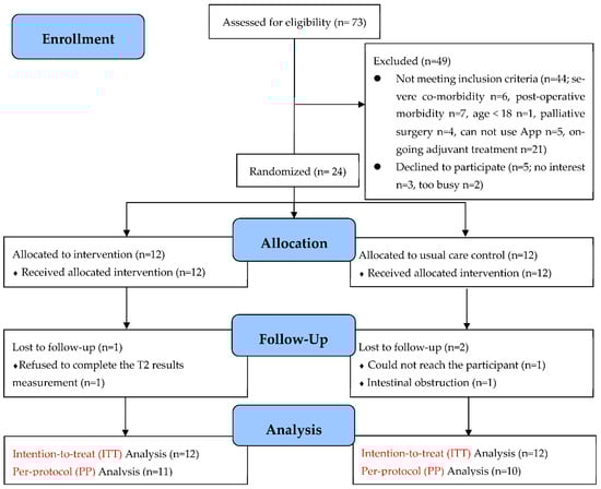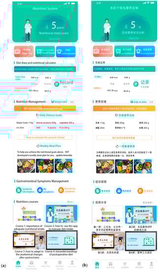 Jiang, X.; Chen, J.; Yuan, X.; Lin, Y.; Chen, Y.; Li, S.; Jiang, Q.; Yu, H.; Du, Q.; Peng, J. Feasibility of an Individualized mHealth Nutrition (iNutrition) Intervention for Post-Discharged Gastric Cancer Patients Following Gastrectomy: A Randomized Controlled Pilot Trial. Nutrients 2023, 15, 1883. https://doi.org/10.3390/nu15081883
