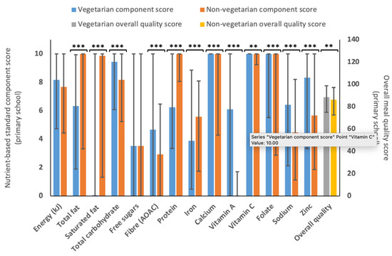 4.4. Nutritional Quality of Vegetarian and Non-Vegetarian Menu Variants