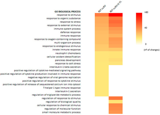 3.2. RV Effect on Overall Intestinal Rat Gene Expression