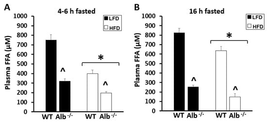 p < 0.05). To confirm the lower plasma FFA levels in Alb