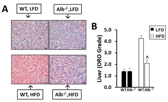 p < 0.05); ORO staining was lower in Alb