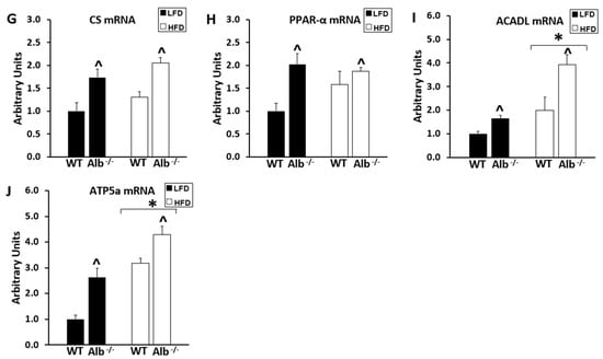 Figure 7A–J). Adipose gene expression was higher in Alb