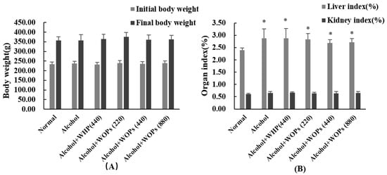 3.1. Effect of WOPs on Body Weight and Organ Index