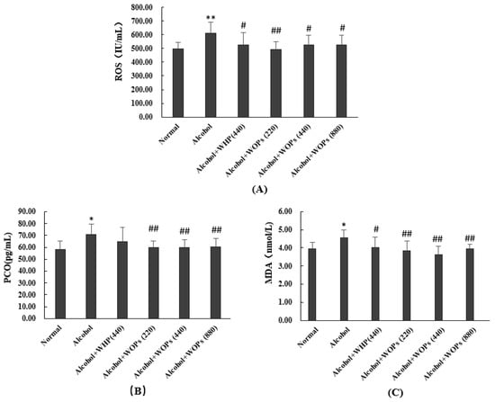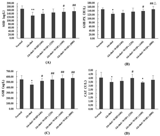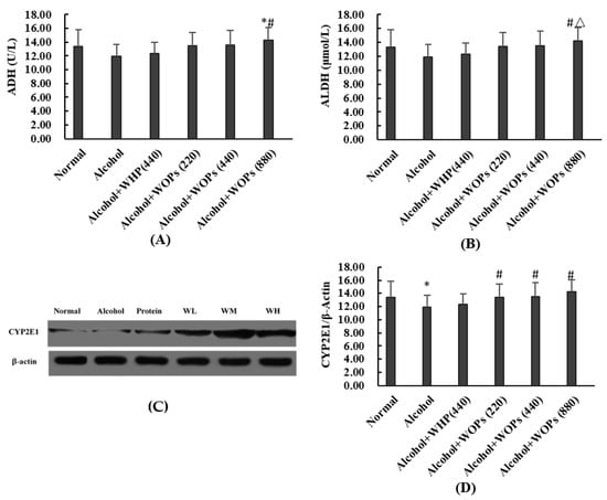 3.6. Effect of WOPs on Alcohol-Metabolic Enzymes in Rat Liver