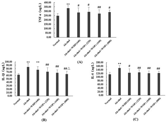 APA StyleLiu, R., Hao, Y.-T., Zhu, N., Liu, X.-R., Mao, R.-X., Kang, J.-W., Hou, C., Zhang, T., & Li, Y. (2023). Walnut (Juglans regia L.) Oligopeptides Alleviate Alcohol-Induced Acute Liver Injury through the Inhibition of Inflammation and Oxidative Stress in Rats. Nutrients, 15(9), 2210. https://doi.org/10.3390/nu15092210