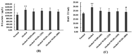 3.10. Effect of WOPs on Intestinal Permeability in Rats