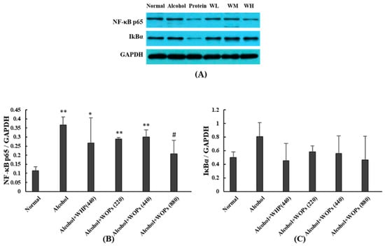 3.11. Effect of WOPs on the Expression of Hepatic NF-κB p65 and IκBα in Rats