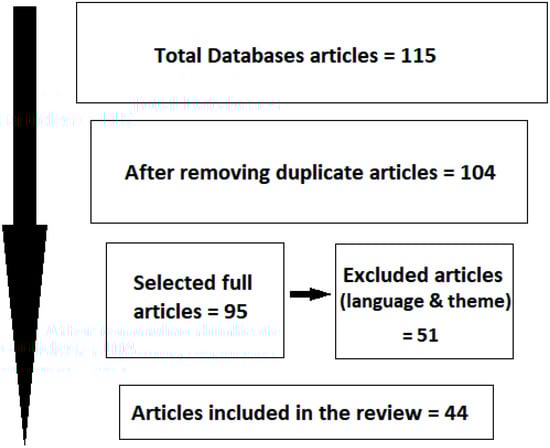 As a result of the literature review, 115 files derived from the research were evaluated and subjected to eligibility analysis, and 44 of the final 95 studies were selected for this review. Exclusion criteria: papers in languages other than English and/or without health focus were excluded. The studies described presented medium to high quality (Figure 1), considering, in the first instance, the level of scientific evidence of the studies in types of study, such as meta-analysis, consensus, randomized clinical trial, prospective, and observational. The biases did not compromise the scientific basis of the studies.