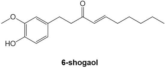 - Na, J.-Y.; Song, K.; Lee, J.-W.; Kim, S.; Kwon, J. Pretreatment of 6-shogaol attenuates oxidative stress and inflammation in middle cerebral artery occlusion-induced mice. Eur. J. Pharmacol. 2016, 788, 241–247. [Google Scholar] [CrossRef]