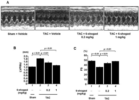 3.4. 6-Shogaol Significantly Attenuated Pressure-Overload-Induced Cardiac Hypertrophy and Systolic Dysfunction in Mice