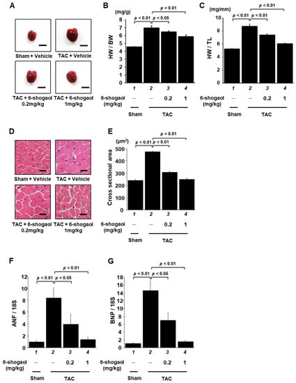 3.5. 6-Shogaol Significantly Inhibited Pressure-Overload-Induced Hypertrophic Responses in Mouse Heart