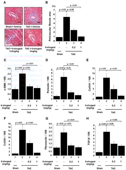 3.6. 6-Shogaol Significantly Suppressed Pressure-Overload-Induced Cardiac Fibrosis in Mouse Heart