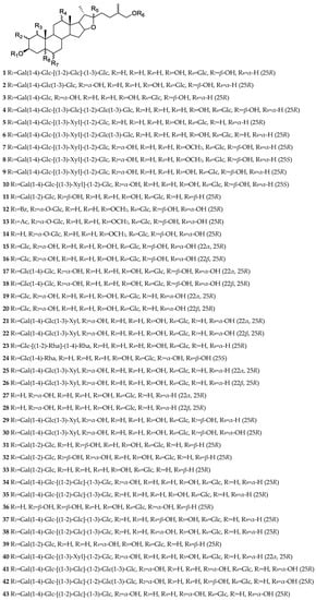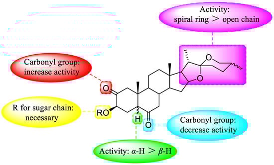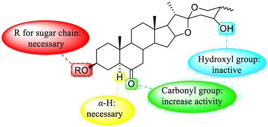 Figure 6 presents the effect of the structure–activity relationship of steroidal saponins on cytotoxicity.
