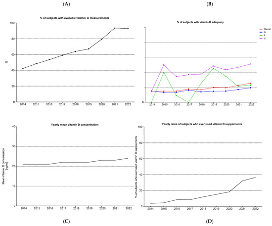 Paparodis RD, Bantouna D, Karvounis E, Zoupas I, Livadas S, Angelopoulos N, Imam S, Papadimitriou DT, Jaume JC. Intense Testing and Use of Vitamin D Supplements Leads to Slow Improvement in Vitamin D Adequacy Rates: A Cross-Sectional Analysis of Real-World Data. Nutrients. 2024; 16(1):111. https://doi.org/10.3390/nu16010111