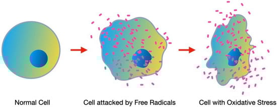 O.S. has gained significant attention in both experimental and clinical medicine as a pivotal trigger for various human diseases. It is a pathological condition that exerts severe damage to tissues and cells because of an unbalanced oxidizing agent mixture and antioxidants, leading to alterations in the oxidation–reduction equilibrium. At the core of O.S. lies the free radicals, highly reactive chemical entities in their outer orbitals, where they have single electrons. Free radicals can initiate chain reactions, inflicting substantial harm to cellular proteins and nucleic acids. Among the most notable free radicals are ROS, which play a crucial role in the redox balance [].