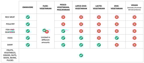 - Hargreaves, S.M.; Rosenfeld, D.L.; Moreira, A.V.B.; Zandonadi, R.P. Plant-Based and Vegetarian Diets: An Overview and Definition of These Dietary Patterns. Eur. J. Nutr. 2023, 62, 1109–1121. [Google Scholar] [CrossRef]
