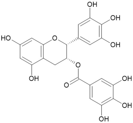 Epigallocatechin gallate is a catechin molecule with antioxidant and anti-inflammatory actions. It also protects the skin from UV-ray damage.