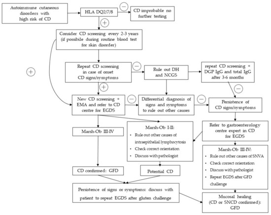 - Catassi, C.; Fasano, A. Celiac Disease Diagnosis: Simple Rules Are Better than Complicated Algorithms. Am. J. Med. 2010, 123, 691–693. [Google Scholar] [CrossRef] [PubMed]