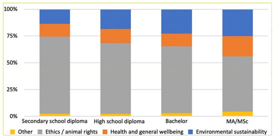 - Hopwood, C.J.; Bleidorn, W.; Schwaba, T.; Chen, S. Health, environmental, and animal rights motives for vegetarian eating. PLoS ONE 2020, 15, e0230609. [Google Scholar] [CrossRef]
