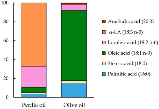 Fatty acid composition of the perilla and olive oils used in the study. α-LA, α-linolenic acid. See Section 2.3.1 for the method of measuring fatty acid composition.