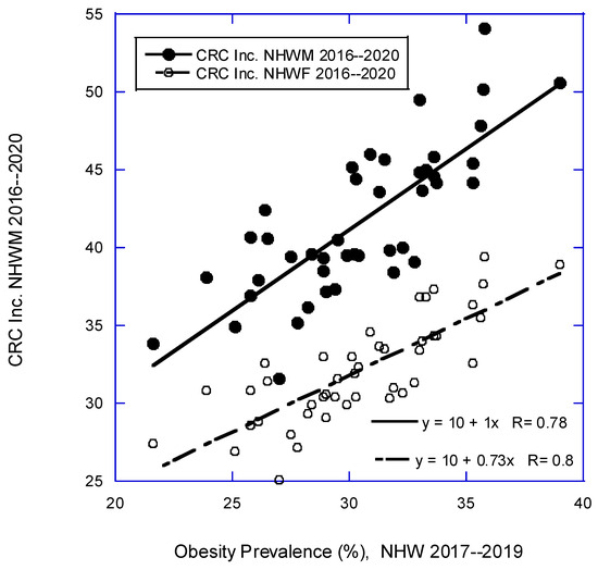 - Obesity prevalence was significantly associated with breast, colorectal, and renal cancer.