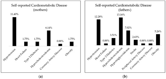 Declared cardiometabolic diseases of (a) mothers and (b) fathers of students enrolled.