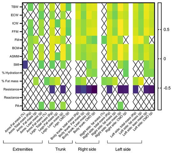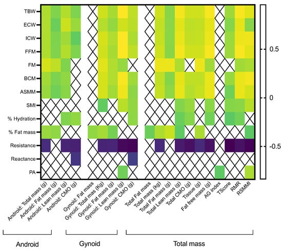 3.4. Clinical Correlations between Different Body Composition Measurements Determined by BIA and DEXA