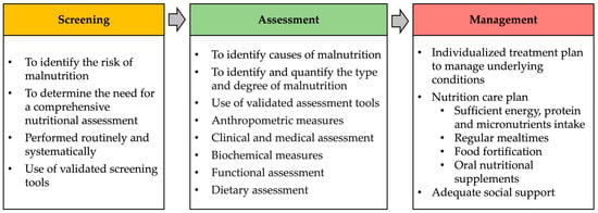 Loda I, D’Angelo E, Marzetti E, Kerminen H. Prevention, Assessment, and Management of Malnutrition in Older Adults with Early Stages of Cognitive Disorders. Nutrients. 2024; 16(11):1566. https://doi.org/10.3390/nu16111566