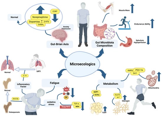 Yang K, Chen Y, Wang M, Zhang Y, Yuan Y, Hou H, Mao Y-H. The Improvement and Related Mechanism of Microecologics on the Sports Performance and Post-Exercise Recovery of Athletes: A Narrative Review. Nutrients. 2024; 16(11):1602. https://doi.org/10.3390/nu16111602