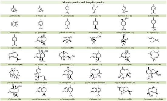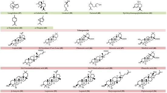 All the compounds identified in P. lentiscus, divided by class of molecules, are summarized below in Figure 2.