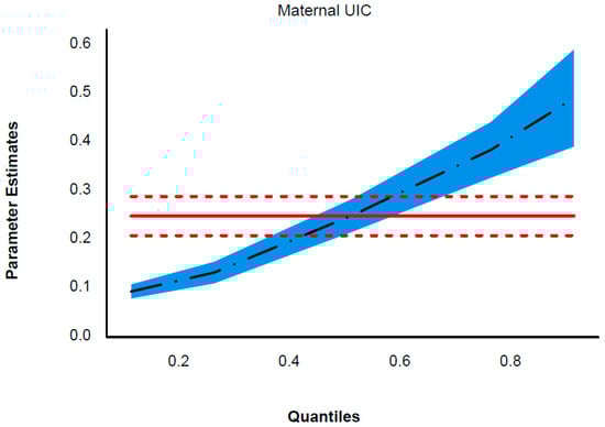 | Maternal UIC | 0.094 (0.079, 0.108) *** | 0.133 (0.110, 0.155) *** | 0.251 (0.217, 0.284) *** | 0.385 (0.327, 0.442) *** | 0.491 (0.392, 0.591) *** |