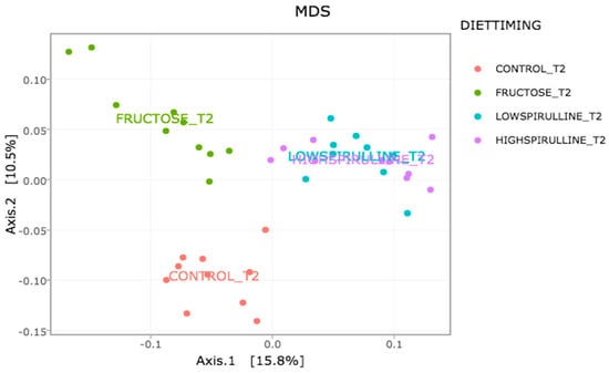 However, research on the protective effects of spirulina in improving kidney and pancreas function and IM induced by a 40% fructose-enriched diet is lacking. Some studies showed promise in improving metabolic disorders like lipid and carbohydrates metabolism, particularly in high-sucrose or high-fat diet scenarios [,]. However, more studies, with different diet compositions, are needed to provide deeper insights into spirulina’s potential benefits for kidney and pancreas health and microbiota.