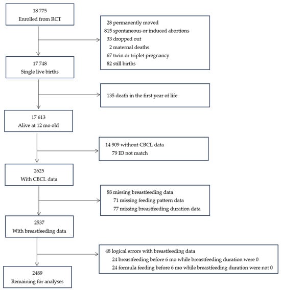 APA StyleMeng, Y., Yu, H., Zhang, M., Li, H., Zhou, Y., & Liu, J. (2024). The Effects of Breastfeeding on Childhood Behavioral and Emotional Development: A Prospective Cohort Study in China. Nutrients, 16(11), 1743. https://doi.org/10.3390/nu16111743
