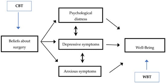 Interventions aimed at reducing psychological distress in the preoperative period may help CD patients to withstand the stress of surgery, attenuate possible postoperative impairments in psychological and physical function, and accelerate the return to preoperative levels of functioning [,,]. Treatment options include psychoeducation and psychotherapy based on cognitive-behavioural principles [,,,,]. Psychoeducation may be used to provide information on the surgical procedure, treatments, expected side effects, recovery process, and functional modifications [,]. Cognitive behavioural therapy [,] may help patients to focus on the early identification and restructuring of own disruptive beliefs about surgery, which lead to psychological distress [,,], promoting adaptive behaviours [,,]. Intervention aimed at promoting psychological well-being, i.e., Well-Being Therapy [], may be considered []. Well-Being Therapy was found to be promising in helping patients to cope with chronical medical diseases [,,,].