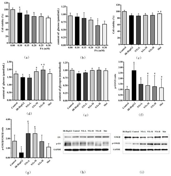 3.2. The Effect of Exogenous NTs on the Viability of IR-HepG2 Cells