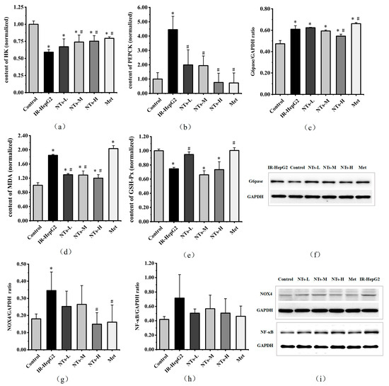 3.5. The Effect of Exogenous NTs on Glycolysis/Gluconeogenesis in IR-HepG2 Cells