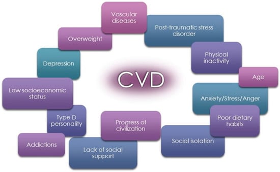 An additional factor related to the incidence of CVD and the associated high mortality rate is the current progress of civilization, which has resulted in lifestyle changes and increased susceptibility to stressors, as well as low socioeconomic status, a lack of social support, and withdrawal from life [7].
