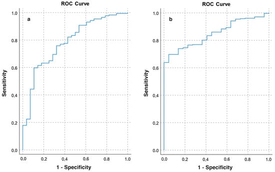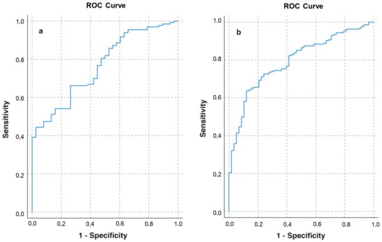 ROC curve analysis. Discriminative capacity of SMA for detecting low ASMM in women (a) and men (b).