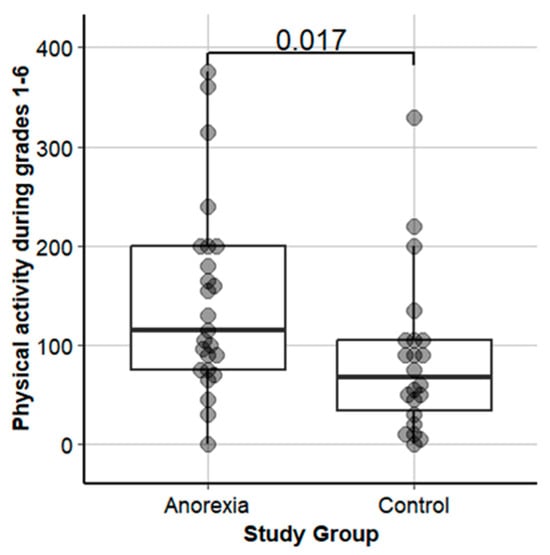 Premorbid physical activity in grades 1-6 in adolescents with anorexia nervosa vs. healthy controls.