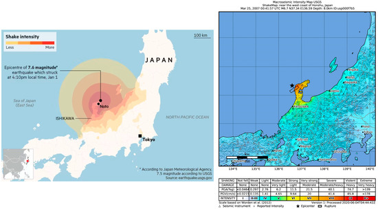 - 2007 Noto Earthquake. 2007. Available online: https://en.wikipedia.org/w/index.php?title=2007_Noto_earthquake&oldid=1219026804 (accessed on 23 April 2024).