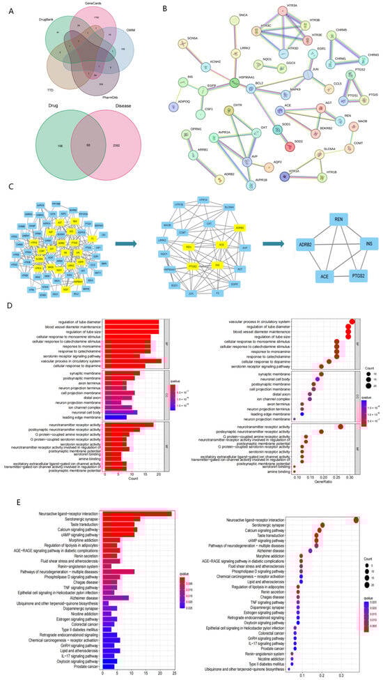 2.4. Network Pharmacology Reveals Potential Targets and Pathways Associated with Evodiamine Intervention in PTSD