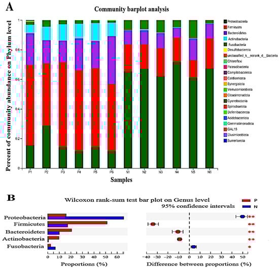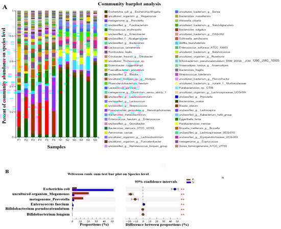 3.4. The Effects of POSH1 on the Abundance of Gut Microbial Phylum, Genus and Species